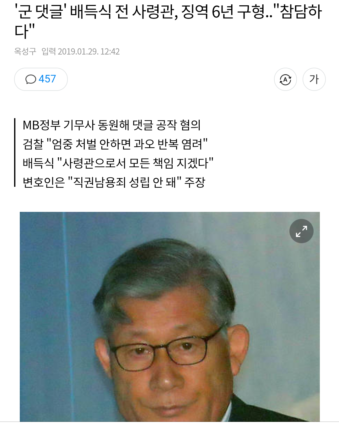 댓글 공작 배득식 전 사령관 징역 6년 구형
